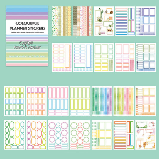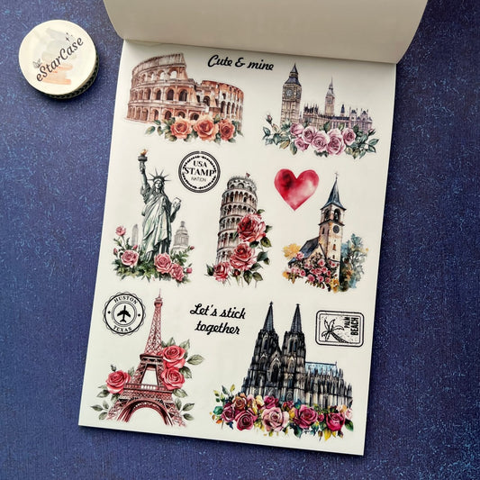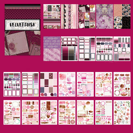Beautiful details, color. Size will fit a classic planner. Variation of matte, clear, and washi tape stickers.
