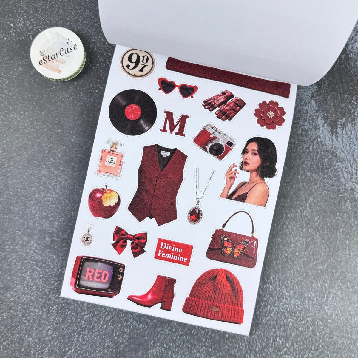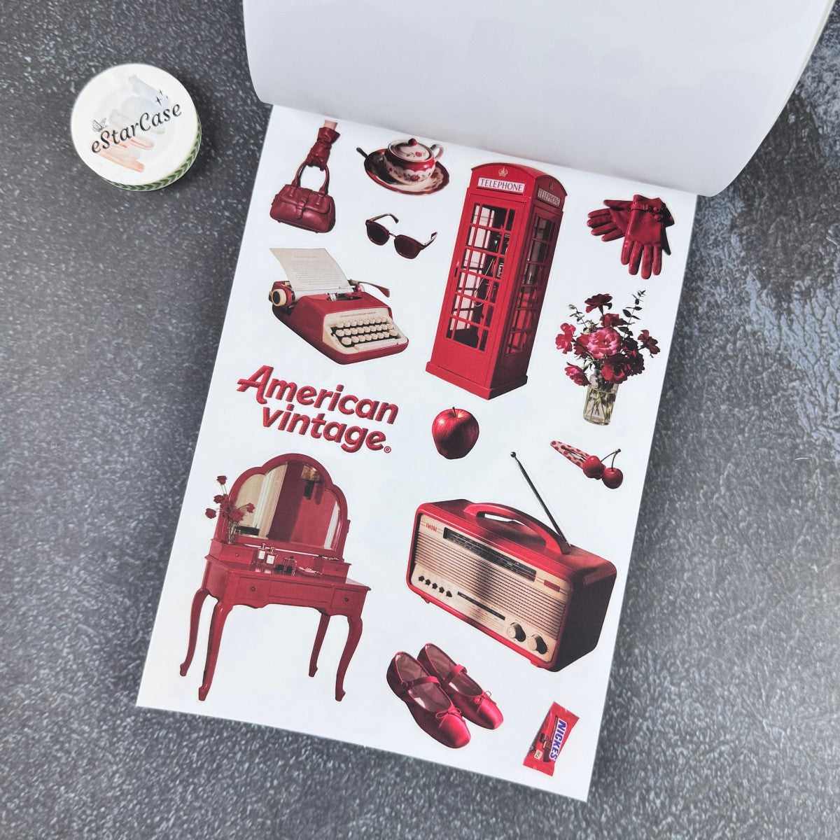 Introducing Retro Red Sticker Book, the perfect addition to your scrapbooking collection. With this book, you can easily create beautiful and unique designs for your scrapbook pages. Unleash your creativity and bring your memories to life with the help of our high-quality stickers. Enhance your scrapbooking experience today!