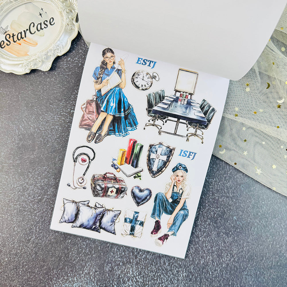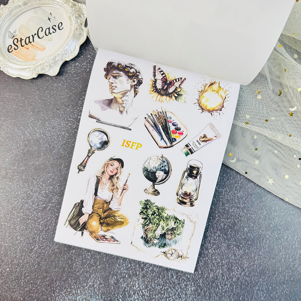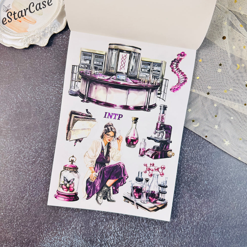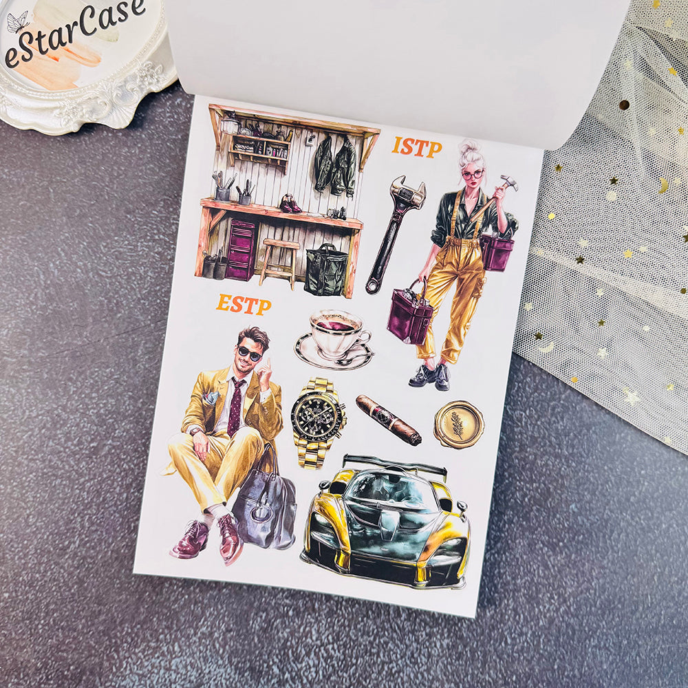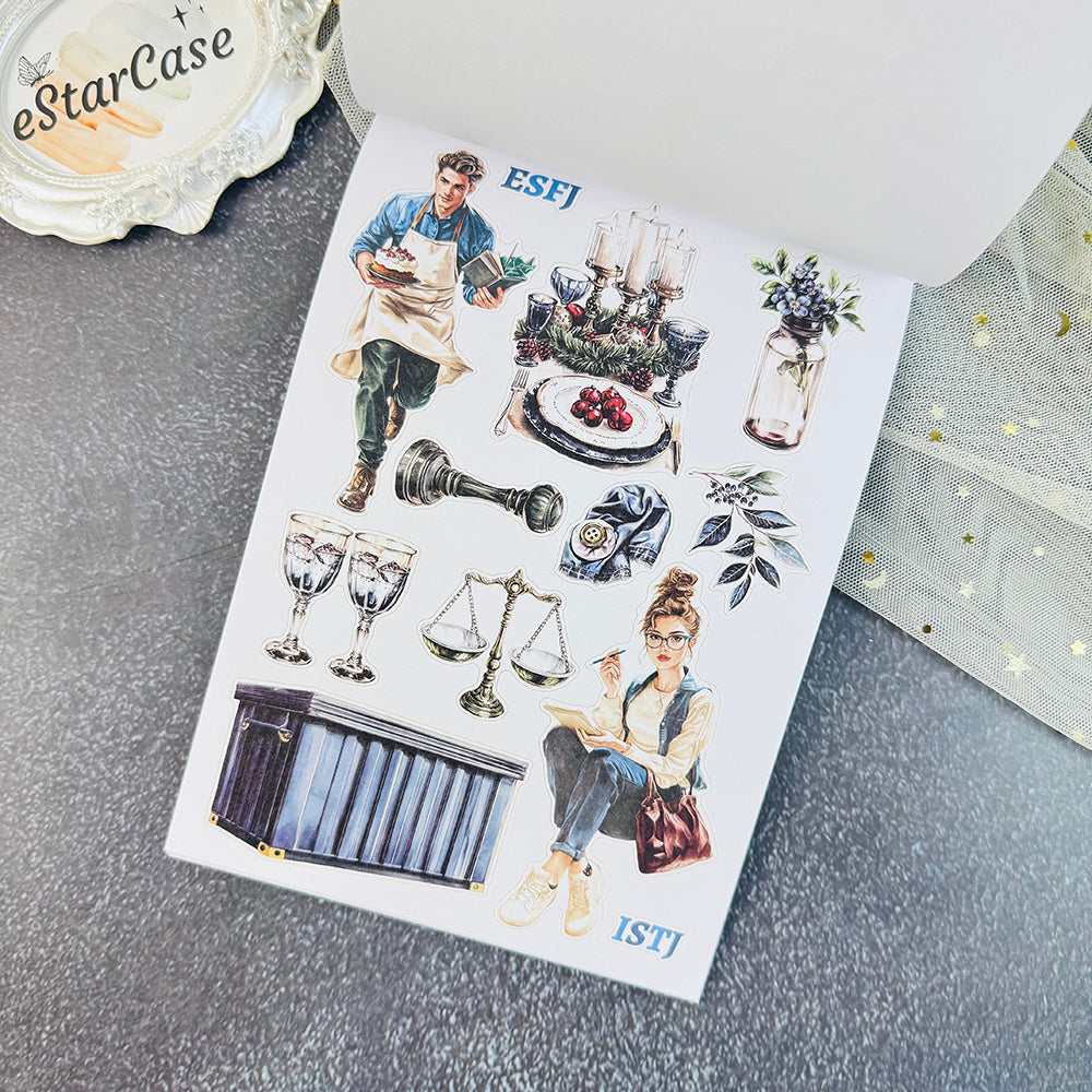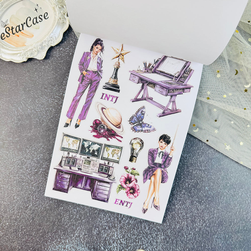 Introducing 16 Personalities Stickers Book, the perfect addition to your scrapbooking collection. With this book, you can easily create beautiful and unique designs for your scrapbook pages. Unleash your creativity and bring your memories to life with the help of our high-quality stickers. Enhance your scrapbooking experience today!