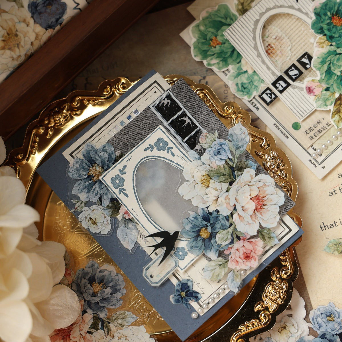 PET and Washi tape, designed with flowers in blue and green tones respectively.  as the main element, the color is gentle, romantic and elegant, perfect for adding a touch of sophistication to all your creative projects.