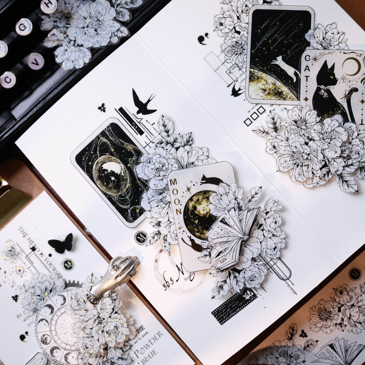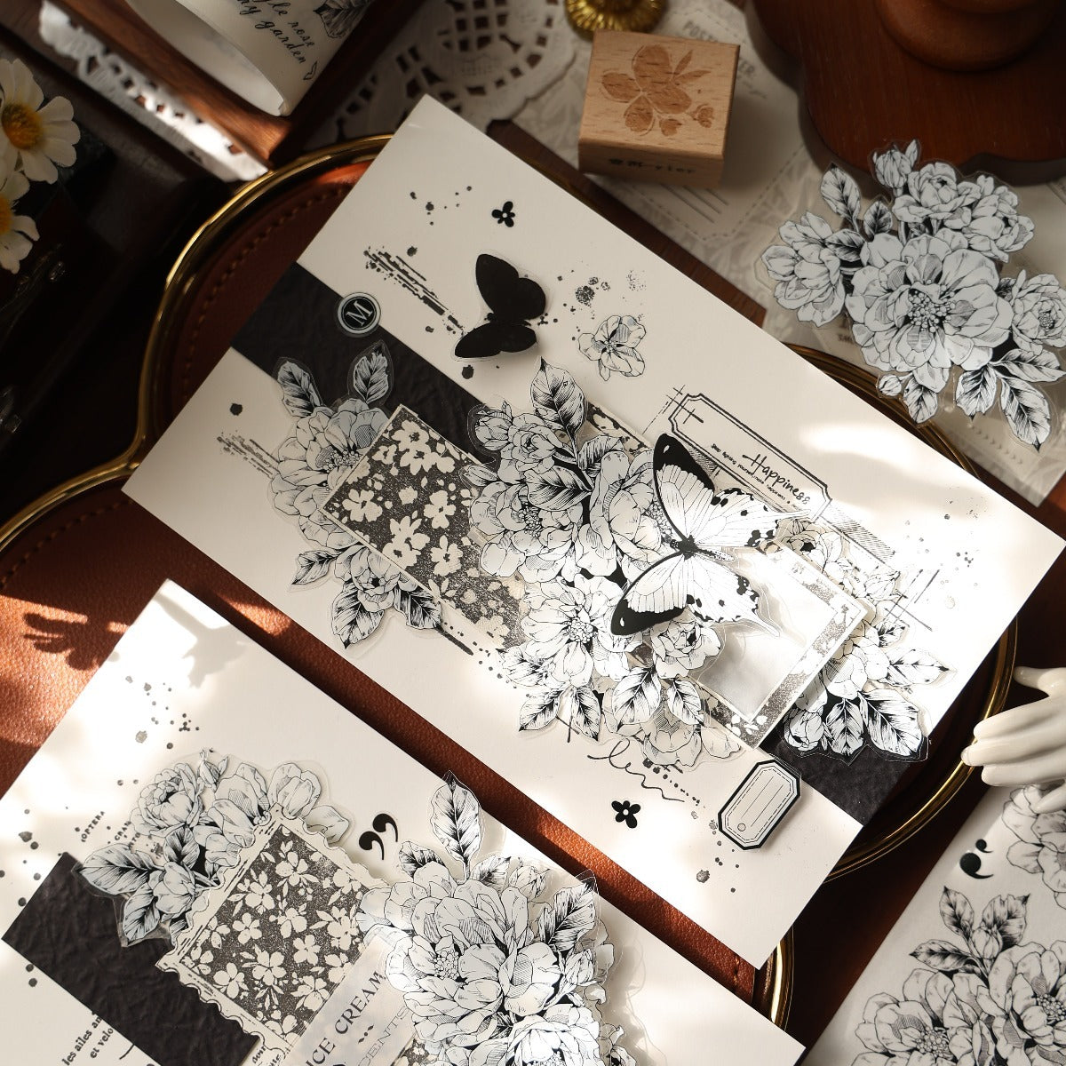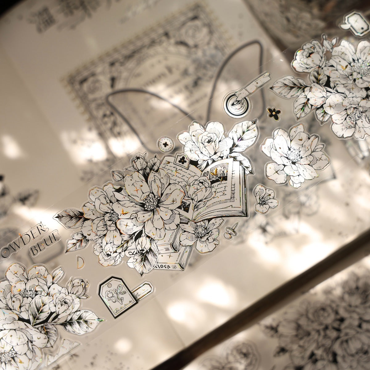 Washi tape, designed with black and white style flowers and books  as the main element, the color is gentle, romantic and elegant, perfect for adding a touch of sophistication to all your creative projects.