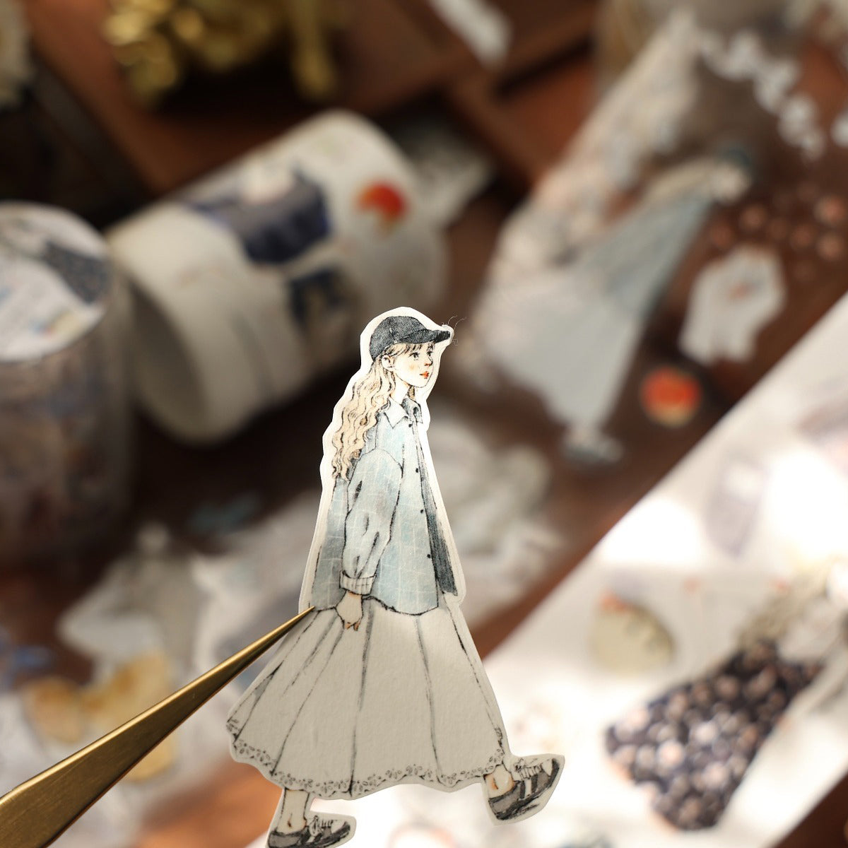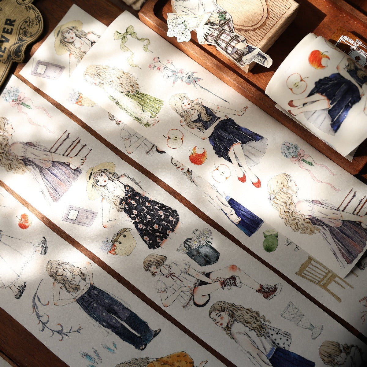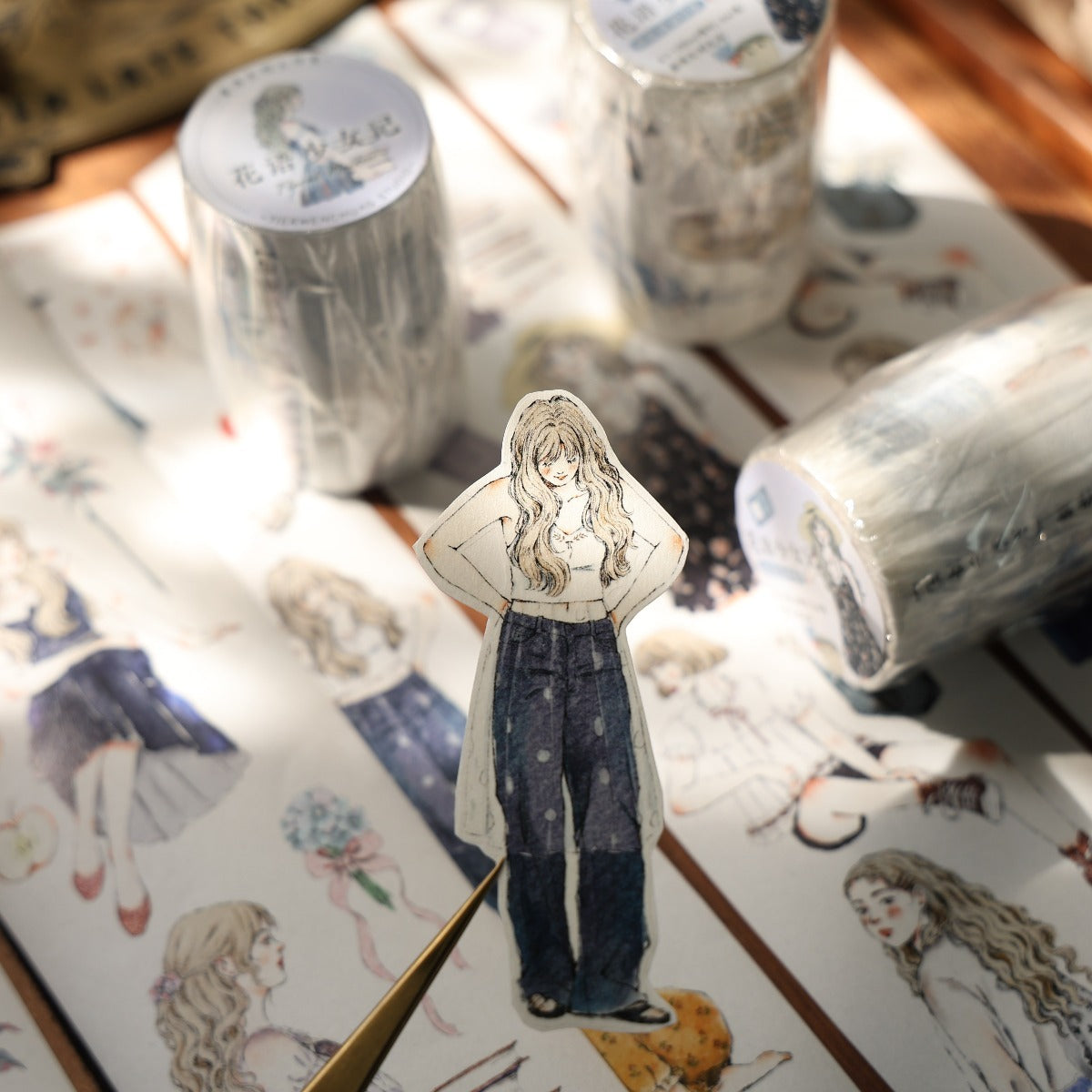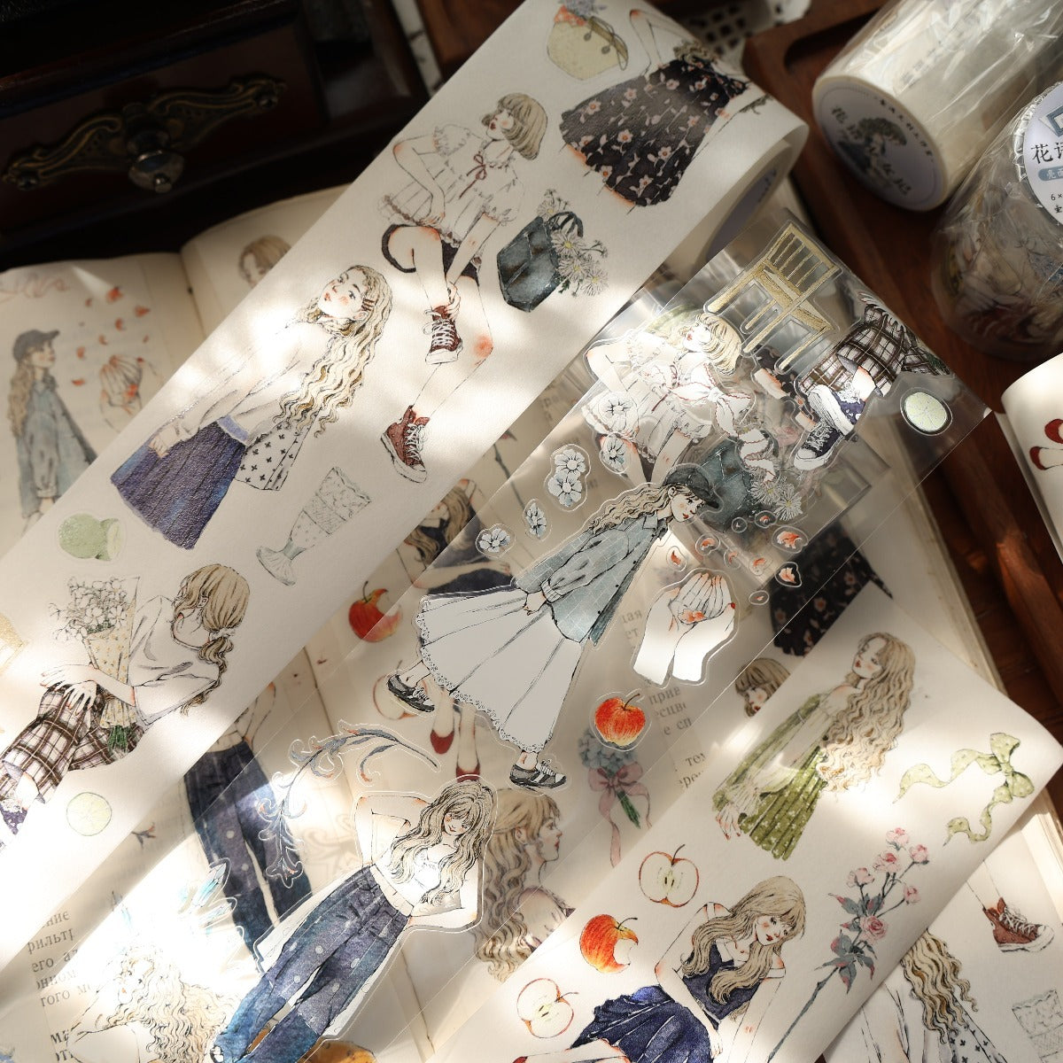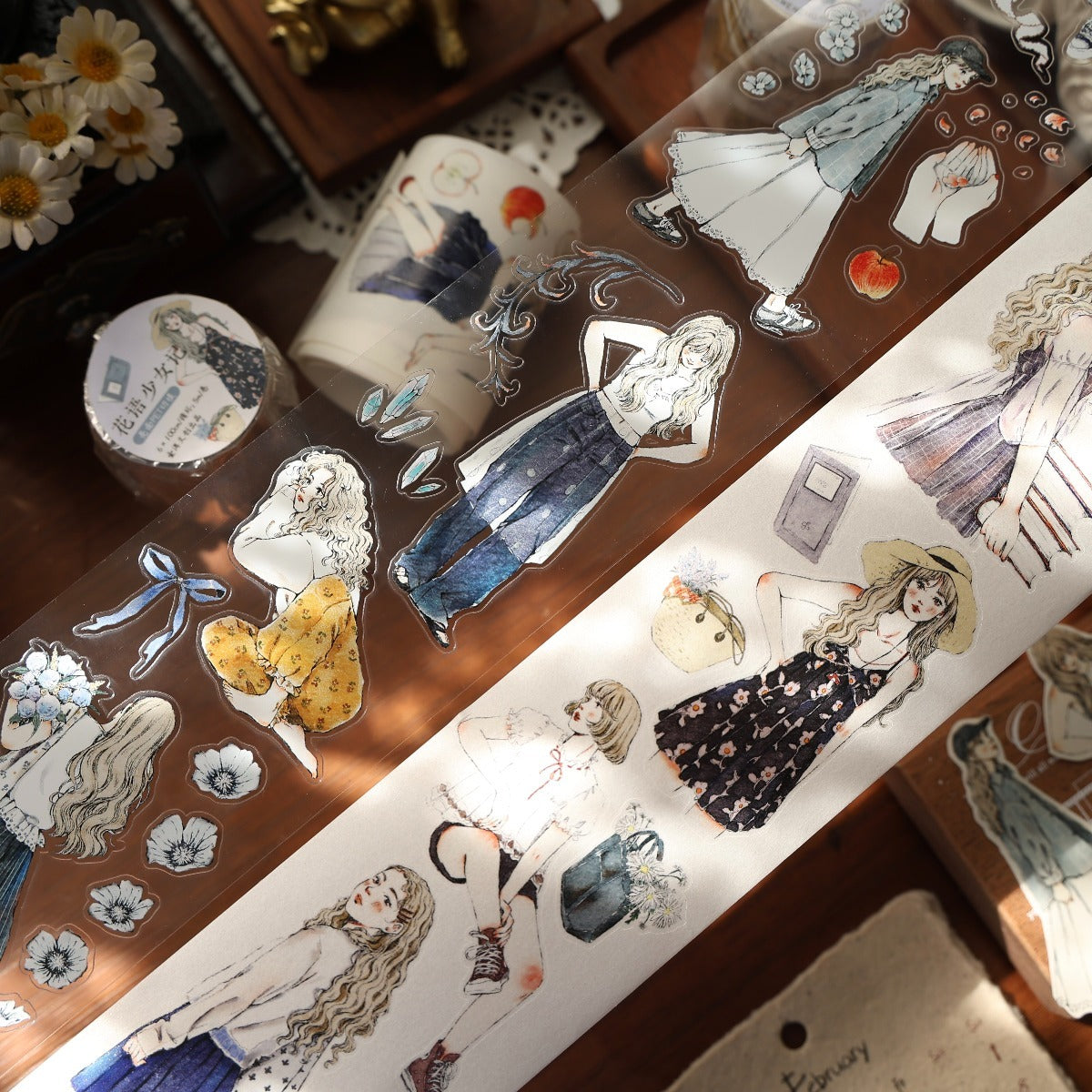Forest girl character Retro PET and Washi Paper Tape, the girls  with gentle color, every girl has her own look, confident and beautiful, they all enjoy their daily life, bringing a different feeling to your creations. . Whether you want to liven up a journal, embellish a planner, or add flair to your crafts, these words and patterns will spread joy.