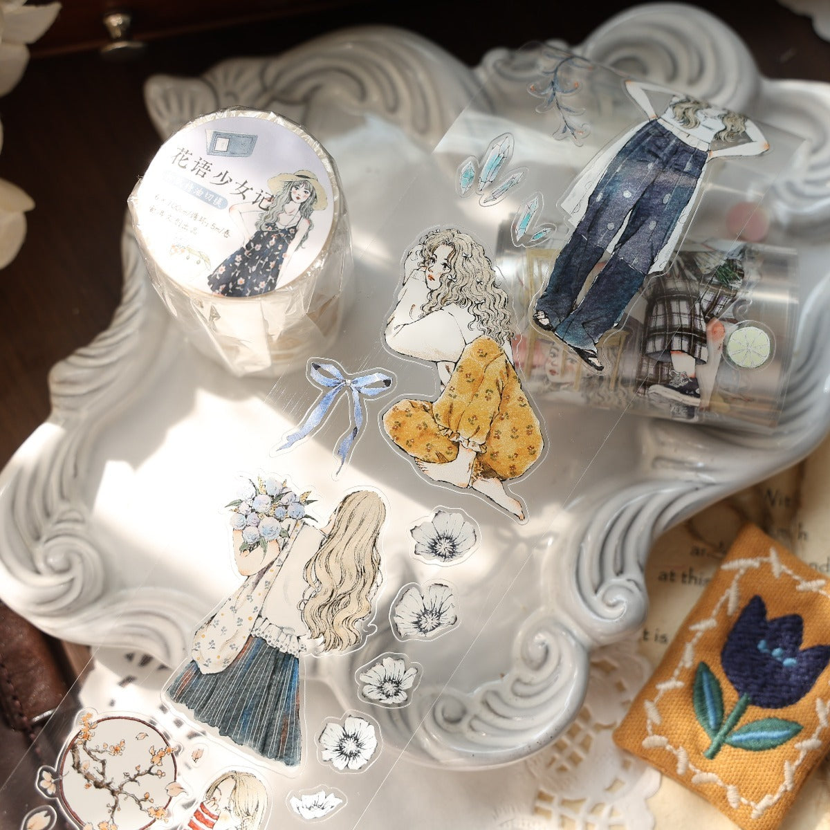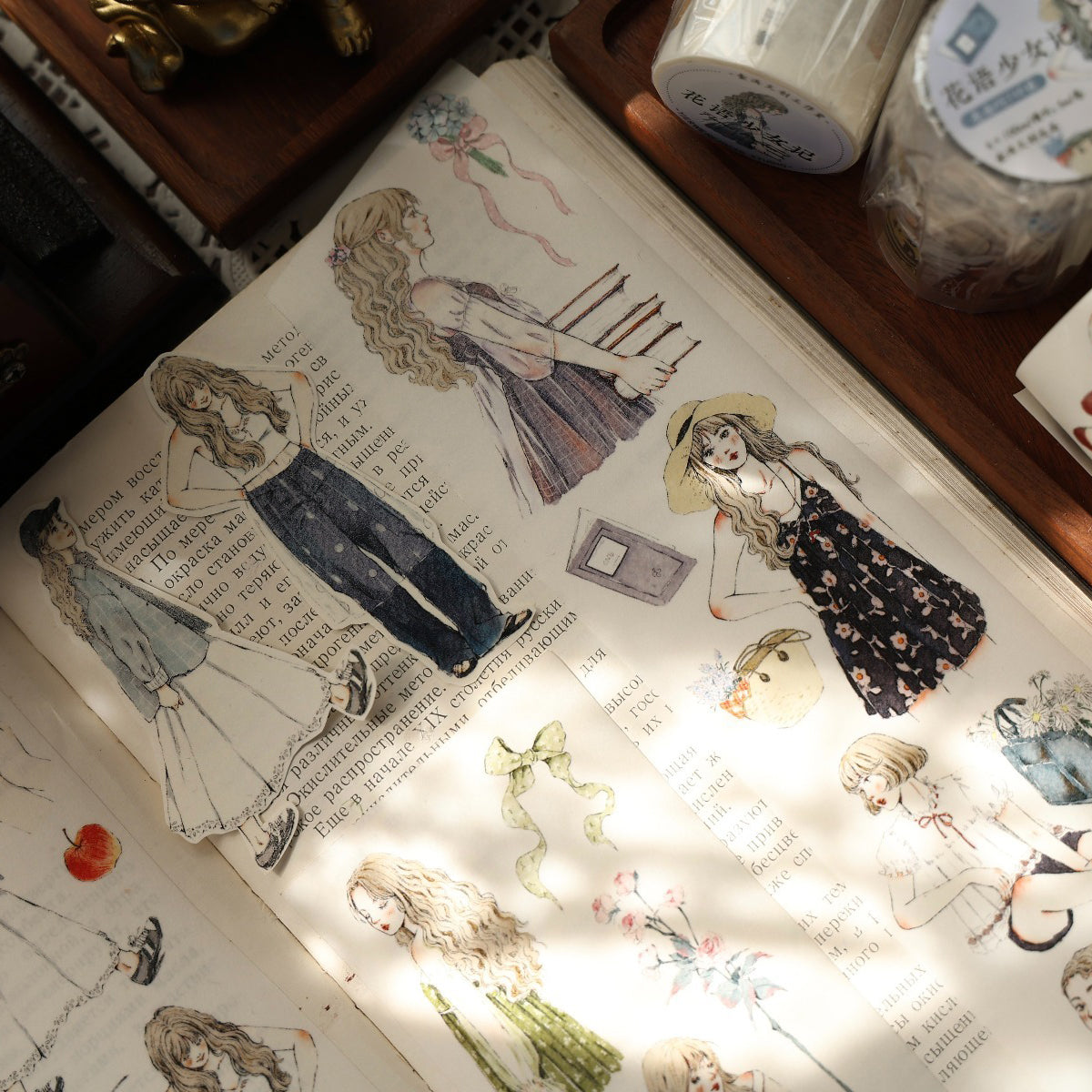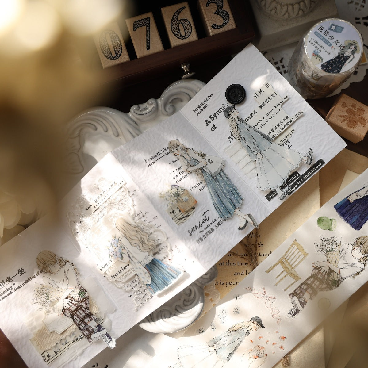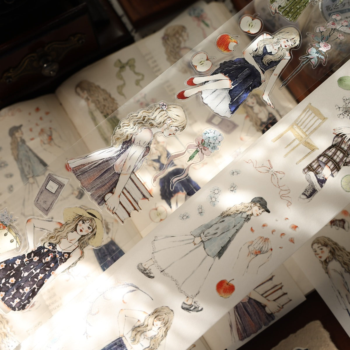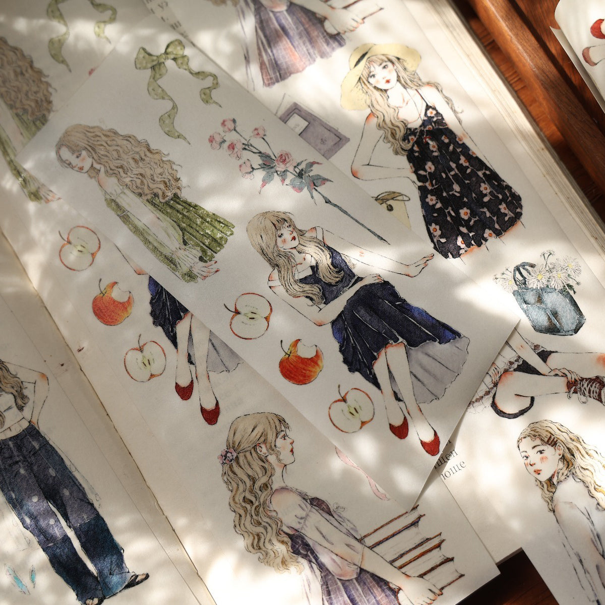 Forest girl character Retro PET and Washi Paper Tape, the girls  with gentle color, every girl has her own look, confident and beautiful, they all enjoy their daily life, bringing a different feeling to your creations. . Whether you want to liven up a journal, embellish a planner, or add flair to your crafts, these words and patterns will spread joy.