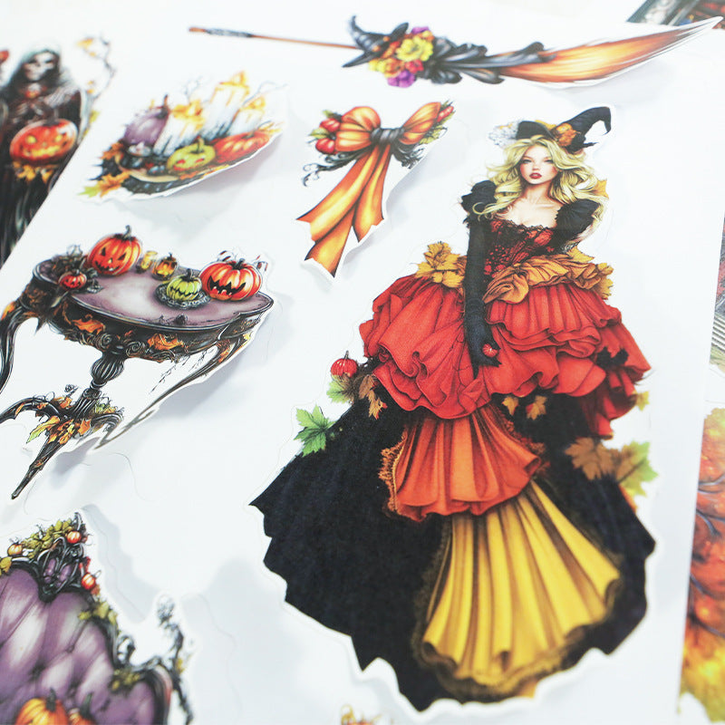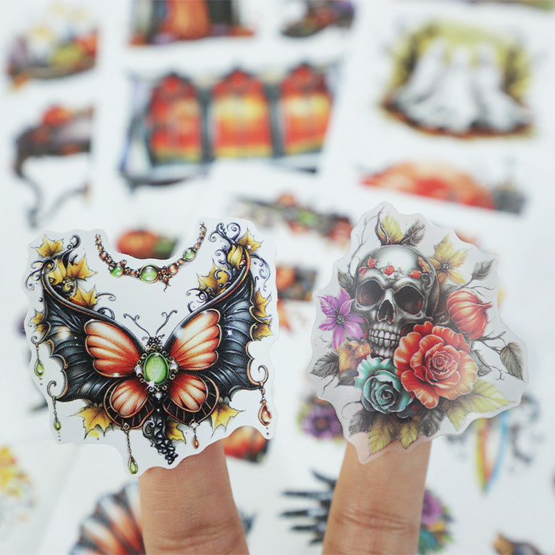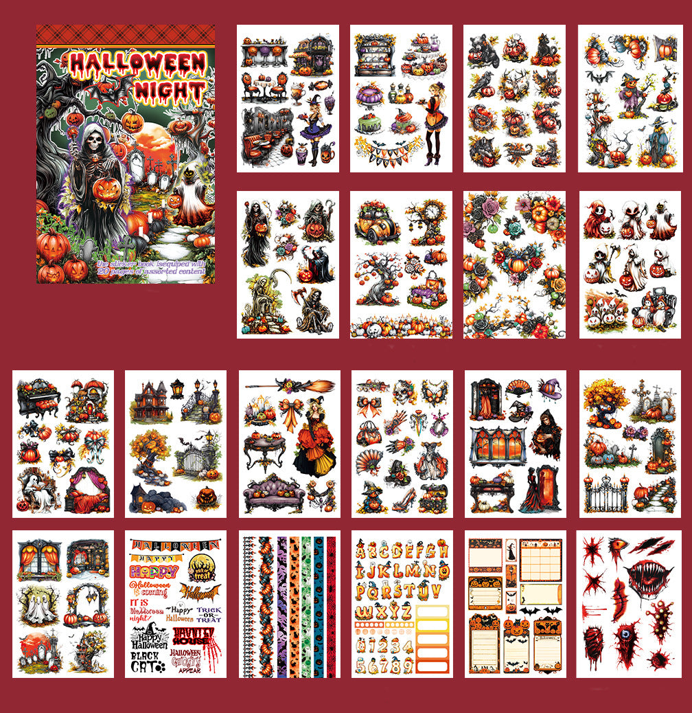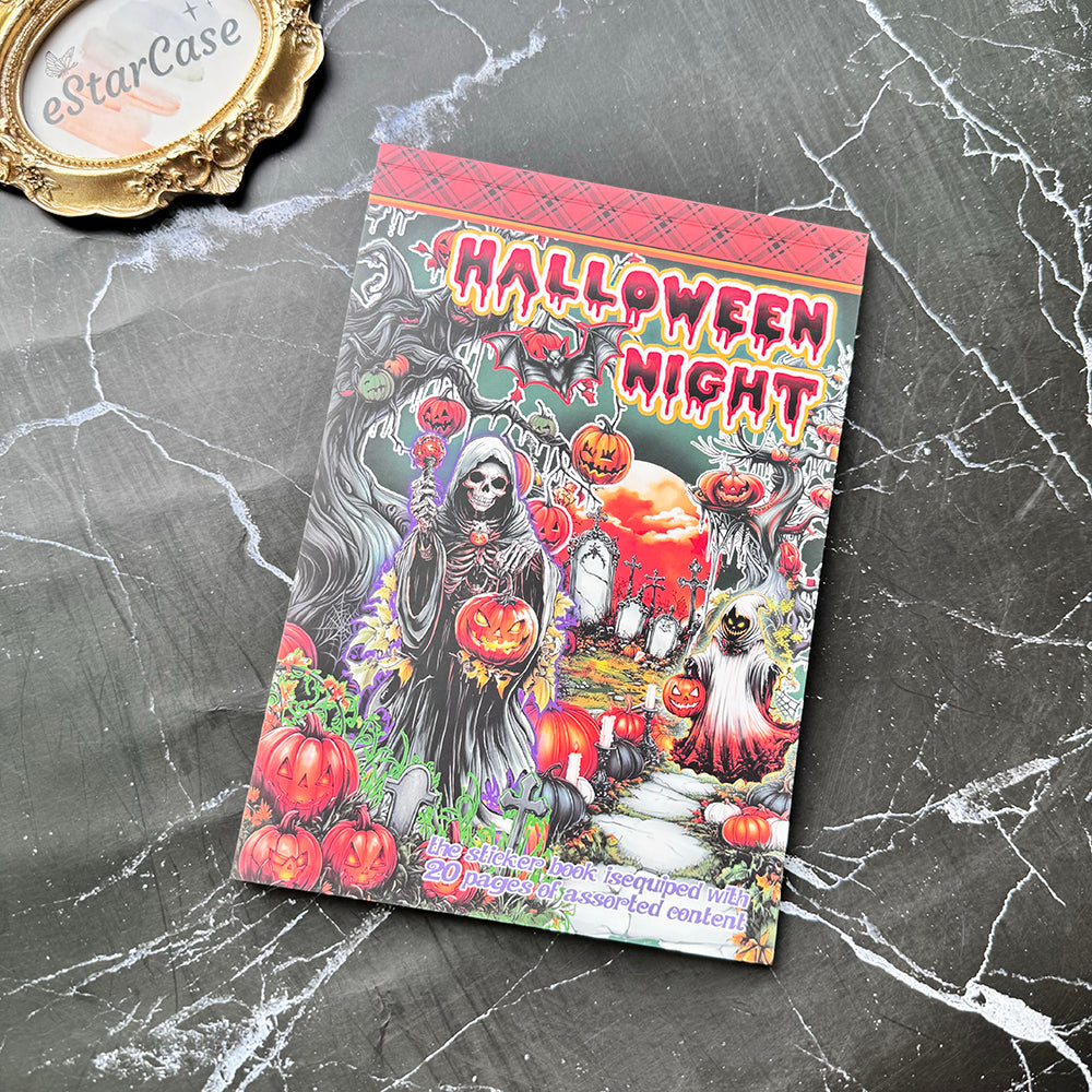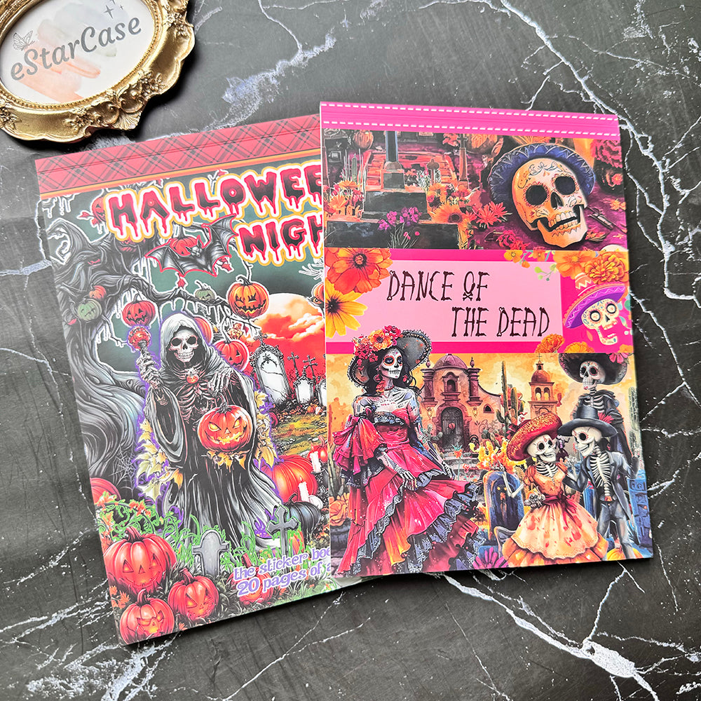 The "Halloween Night" and "Death Days" ticker book is filled with spooky and fun designs, including haunted houses, jack-o'-lanterns, ghosts, and witches. Perfect for decorating journals, planners, and crafts, these stickers bring the eerie excitement to your projects. Each sticker adds a playful, spooky vibe, making your celebrations even more thrilling and festive.