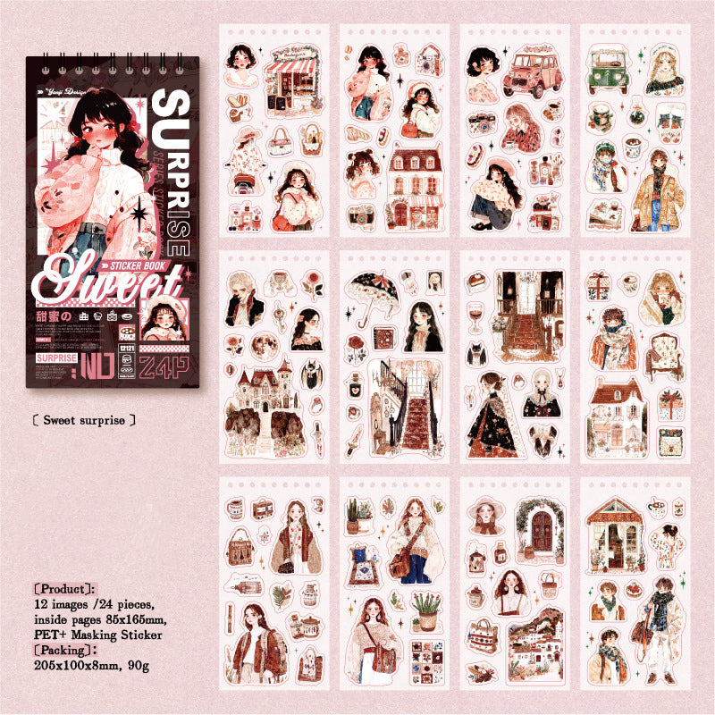 Introducing Sweet Surprise Stickers Book, the perfect addition to your scrapbooking collection. With this book, you can easily create beautiful and unique designs for your scrapbook pages. Unleash your creativity and bring your memories to life with the help of our high-quality stickers. Enhance your scrapbooking experience today!