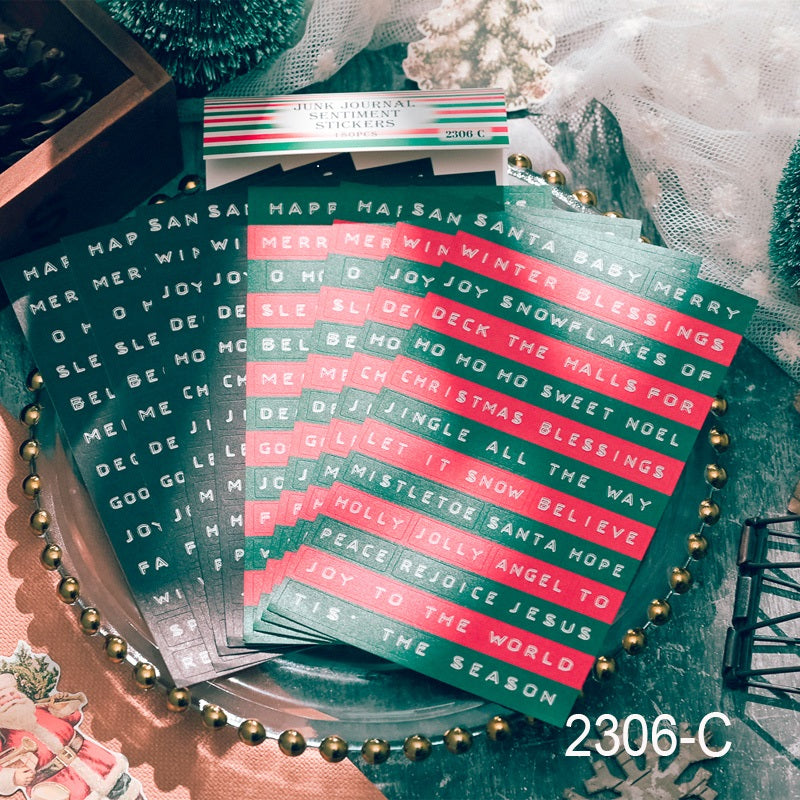 These artistic font stickers feature sentiments, greetings, and traditional Christmas phrases. They are perfect for holiday scrapbooking, journaling, card making, gift wrapping and more!